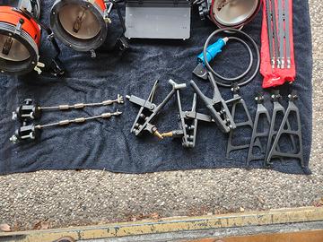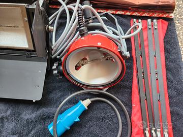 Set di luci alogene da fotografia e video anni '90 professionali. Mai utilizzate e ben conservate, vendute con diversi pezzi di supporto e fissaggio.