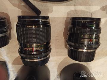 Pacchetto comprendente: Macchina fotografica, corpo, Olympus OM20 Macchina fotografica, corpo, Olympus OM10 Obiettivo Sigma 28mm f:2.8 macro Obiettivo Sigma 135mm f:3.5 Duplicatore di focale Motore Winder OM-1 7 rullini negativi L'OM10 molto usata, l'OM20 quasi nuova.