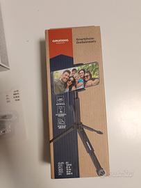 Treppiede per smartphone. Marca Grundig. rotabile di 360 gradi, si allunga fino a 17 cm. Materiale: plastica.