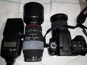 il set è formato da un corpo macchina reflex digitale sony alfa 200+ zom sony 28/70 con messa a fuoco manuale+zom 70/300 SIGMA con messa a fuoco automatica o manuale+ flash metz 48 dedicato per sony che può lavorare in automatico o manuale