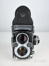 Propongo per la vendita un set assolutamente introvabile di fotografia medio formato in condizioni assolutamente perfette, il tutto soggetto a recentissima revisione da parte di New Old Camera (Milano) che ne ha assicurato l'integrità assoluta e lo stato come nuovo, sistemando appena i tempi e ricaricando l'esposimetro. Il tutto è come nuovo e di una rarità assoluta. Una Rolleiflex 3.5F WHITEFACE (il modello più ricercato e raro), DUE visori perfetti con la custodia originale, un set originale con custodia originale di filtri assolutamente introvabile (filtro UV, infrared, ecc.... con alcune custodie singole originali), raccolto in lunghi anni di collezionismo e ricerca. Custodia originale della Rollei. Una testa di cavalletto di altissima fattura su cui montare la macchina. Si tratta di un insieme di materiale del tutto fuori dal comune per condizione, pregio e rarità. Impossibile trovare del materiale in stato così perfetto tutto insieme, con numerosi pezzi completamente introvabili. Il tutto venduto insieme solo per veri appassionati di analogico e collezionisti di alto spessore.