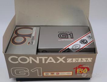 Contax G1 Green Label “150 Years Carl Zeiss” + Sonnar T 90mm f/2.8 – Nuova Sigillata (NOS)* Vendo Kit Contax G1 Green Label – Edizione Anniversario 150 Anni Carl Zeiss, in condizioni autentiche New Old Stock. Il corpo macchina è completamente sigillato in fabbrica, con sigillo originale Contax intatto. La scatola non è mai stata aperta: nessuno ha mai maneggiato la fotocamera dalla produzione. Sarà l’acquirente il primo ad aprirla. L’obiettivo Carl Zeiss Sonnar T 90mm f/2.8* è nuovo, mai montato. La confezione non aveva sigillo ed è stata aperta solo per documentazione fotografica. Condizioni ottiche ed estetiche perfette. Incluso: • Contax G1 Green Label sigillata • Zeiss Sonnar T* 90mm f/2.8 • Scatole originali • Accessori originali Edizione limitata celebrativa “150 Years Carl Zeiss”, versione Green Label, sistema Contax G mount, fotocamera a telemetro 35mm di alta gamma prodotta da Kyocera. Ho 74 anni, sono un fotografo in pensione ed ex rivenditore del settore. Sto lentamente vendendo il mio magazzino personale, conservato per decenni con grande cura, in ambiente climatizzato con temperatura e umidità controllate. Ho sempre custodito queste attrezzature come un patrimonio futuro. Nessuna umidità. Nessun utilizzo. Nessuna manipolazione. Esemplare da collezione, ideale per appassionati Contax, Zeiss e fotografia analogica di qualità. Massima serietà. Spedizione accurata e assicurata. "La Contax G1 “150 Years Carl Zeiss” è una versione limitata commemorativa prodotta alla fine degli anni ’90 in occasione dei 150 anni di Carl Zeiss, la celebre azienda ottica tedesca. Questo modello è identificato con l’etichetta Green Label all’interno della fotocamera e rappresenta una variante “aggiornata” rispetto alle prime versioni silver label della G1."