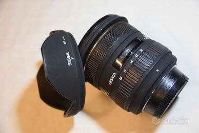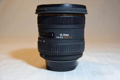 Sigma 10-20mm f/4-5.6 DC HSM EX Grandangolo - Attacco NIKON per corpi macchina APS-C Ottimo stato di funzionalità ed estetico Ghiere fluide Lenti prive di graffi. Comprensivo di: - Paraluce - Tappi Anteriore e Posteriore - Sacca semirigida originale SIGMA Spedizione protetta con TUTTOSUBITO oppure possibile consegna a mano zona Monza/Milano.