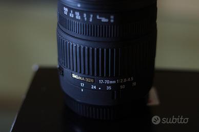 Vendo obiettivo Sigma 17-70mm f/2.8-4.5 DC Macro con attacco Canon EF-S, perfettamente funzionante e in ottime condizioni estetiche (soltanto leggeri segni di usura superficiali, come da foto).