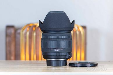 Obiettivo Sigma 17-70mm f2.8-4.5 Macro HSM per fotocamere Nikon. Ideale per una vasta gamma di scatti, dalla macro alla fotografia di paesaggio. L'obiettivo è in ottime condizioni funzionali ed estetiche, lenti pulite e ghiere fluide. La vendita comprende: -Sigma 17-70mm f2.8-4.5 Macro HSM per Nikon -Tappi frontale e posteriore -Paraluce - Lunghezza focale: 17-70mm - Apertura: f2.8-4.5 - Tipo: Macro HSM - Attacco: Nikon