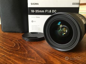 Vendo Sigma 18-35mm f/1.8 DC HSM Art in ottime condizioni con scatola originale, paraluce e porta obiettivo.