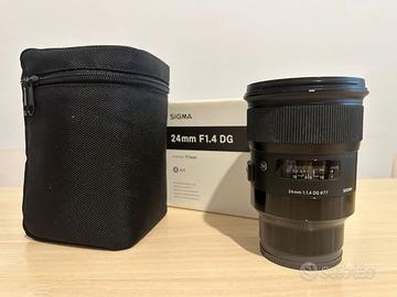 Vendo Obiettivo Sigma 24mm 1.4 con scatola originale. In ottime condizioni, mostra wualche segno di usura normale ma non ci sono graffi ne altri tipi di difetti.