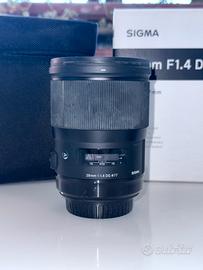 Vendo Sigma 28mm f/1.4 DG HSM Art per Canon. Leggeri segni di utilizzo sul corpo, nessun segno sulle lenti. Completo di scatola e sacca.