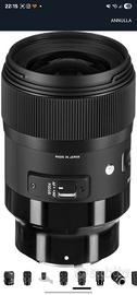 Vendo obiettivo Sigma 35mm F1.4 DG HSM Art compatibile con fotocamere Sony mirrorless Full Frame (E-Mount).