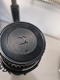 Messa a fuoco manuale, paraluce incorporato, tappi e custodia a tubo originali Sigma.