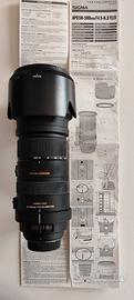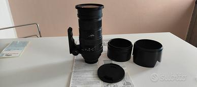 Vendo per cambio categoria obiettivo sigma 50-500 mm attacco Nikon f 4.5-6.3 DG APO HSM VR, adatto per Full Frame e APSC Confezione originale - funzionante al 100x100 solamente lievi normali segni di usura sulle gomme esterne
