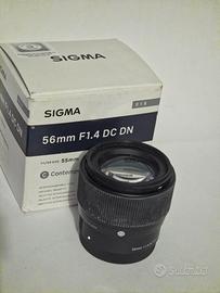 Obiettivo Sigma 56mm f/1.4 DC DN Contemporary con attacco Sony E-mount, compatibile con fotocamere APS-C Sony (es. A6700, FX30, A6400, A6600, ecc.). L’obiettivo è perfettamente funzionante, otticamente in condizioni eccellenti: