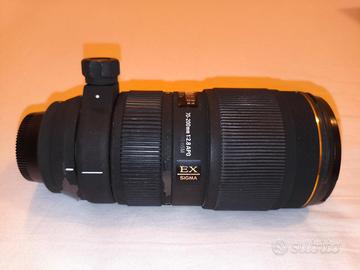 Vendo obiettivo Sigma 70-200 f/2.8. APO EX DG HSM attacco Nikon. L'obiettivo è molto usato come si può vedere dalle foto il rivestimento simil gomma in alcuni punti si sta staccando, presenta un piccolo, direi, fungo su una lente interna e un piccolo segno superficiale sul bordo della lente frontale che non influiscono sulla qualità delle foto. Il suo funzionamento è ottimo non presenta nessun problema sia la messa a fuoco che lo zoom sono fluidi senza nessun impedimento o similare. Comprensivo di tutti gli accessori presenti al momento dell'acquisto: tappi, paraluce, borsa morbida, tracolla, scatola e documenti.