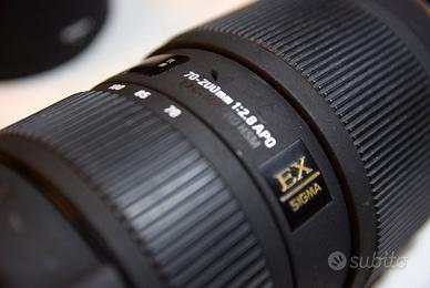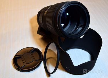 Sigma 70-200mm f/2.8 DG HSM APO Macro Attacco NIKON Per corpi APS-C e FullFrame Completo di Paraluce Staffa di fissaggio Tappi Anteriore e posteriore Custodia Sigma originale. In ottimo stato estetico e di funzionalità. Normali lievi segni di Utilizzo Lenti in perfetto stato prive di Graffi o Muffe Meccanismo di Focus e Zoom fluido. Possibile consegna a mano zona Monza/Milano oppure Spedizione protetta con TUTTOSUBITO.