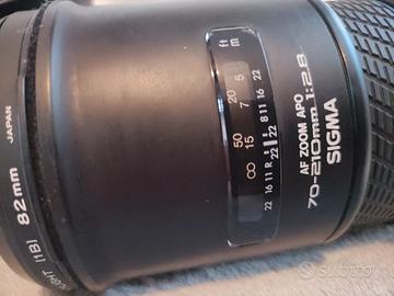 Sigma AF ZOOM APO 70-210mm 1:2.8 Nikon F mount lot-2 In vendita un obiettivo professionale Sigma AF ZOOM APO 70-210mm f/2.8, un'ottica di "vecchia scuola" estremamente robusta e potente, costruita in Giappone con standard elevati. 🔍 Dettagli Tecnici e Curiosità - Apertura Costante f/2.8: Grande luminosità su tutta l'escursione focale, ideale per sport e ritratti con un bokeh di alta qualità. - Zoom 3x: Un classico teleobiettivo che offre una nitidezza eccellente. - Costruzione APO: Correzione delle aberrazioni cromatiche per immagini nitide e colori fedeli. - Compatibilità: Attacco Nikon F. L'autofocus funziona con le reflex dotate di motore interno (serie D90, D7xxx, D300, D6xx, D7xx, D8xx, ecc.). 🛠 Condizioni e Dotazione - Stato: Obiettivo in buone condizioni generali, come visibile nelle foto. - Meccanica: Lo zoom e la messa a fuoco funzionano regolarmente. - Test: Eseguiti test di nitidezza e messa a fuoco all'infinito con esito positivo. - Incluso: Fornito con staffa originale per treppiede, 2 tappi protettivi, paraluce originale e un filtro UV di qualità (Made in Japan).
