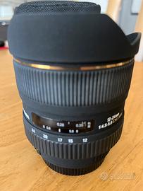 Obiettivo Sigma EX 12-24mm DG HSM, perfetto stato, con paraluce, tappo e custodia originali. Per Canon Full Frame.