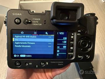 Vendo Sigma SD Quattro con sensore Foveon Quattro e relativa lente Sigma 18-35mm f/1.8 ART con attacco SA, con paraluce originale. Ho trattato entrambi gli articoli con la massima cura, sono in perfette condizioni, senza graffi e segni di usura. Oltre al corpo macchina ed alla lente, includo - Due batterie originali Sigma - Imballaggi Sigma originali, incluso il libretto di istruzioni - Caricabatterie originale. Gli articoli non sono in vendita separatamente. Non è una mirrorless veloce e tecnologicamente performante. I suoi punti di forza sono la resa cromatica e la tridimensionalità dell'immagine data del sensore Foveon, da moti paragonabile al medio formato, a patto che la si utilizzi quasi come una fotocamera analogica. Chi interessato si informi attentamente prima di decidersi di acquistarla. Sono a disposizione per qualsiasi ulteriore dettaglio e foto aggiuntive.