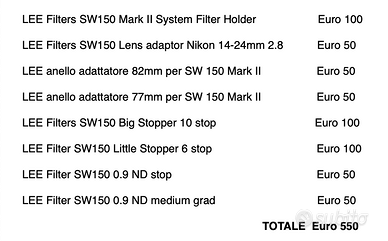 Causa cambio sistema fotografico, vendo il mio kit di filtri e accessori LEE Filters SW150 Mark II.