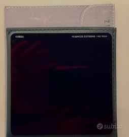 Sistema filtri 100 mm con supporto e due anelli adattatori (#58 in conf.originale, #67 montato), con filtri z153 e z154 ( ND4 e ND8) più il ND 1024 ( 10 stops). Tutto perfetto, usato pochissimo.