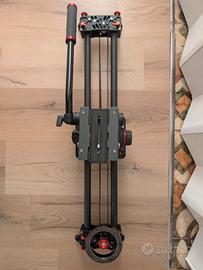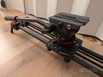 Slide con barre in carbonio marca Buyslider usato si e no 2 volte, piedini regolabili e rondelle in ergal, compreso estensione tubi e cinghia per rendere lo slide più lungo (lunghezza slide 65cm) tubi estensione 65cm anche loro. Insieme fornisco anche testa video manfrotto anche quella come nuova mai usata e treppiede Manfrotto modello 190 in alluminio usato ma in buone condizioni.