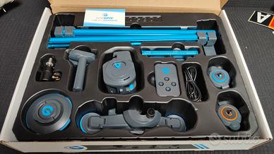 Vendo per inutilzzo Slider Grip Gear Movie Maker Directors Set per smartphone e piccole macchine fotografiche, pari al nuovo con tutti i pezzi nella sua scatola originale. Pocket Sized Camera Motion Control kit include - A Slider + Micro Dolly + Pano Mount. E' il più piccolo kit di controllo del movimento della fotocamera telecomandato al mondo. Si trasforma in un supporto panoramico a 360°, un Micro Dolly e un cursore per fotocamera. è uno slider elettronico a 9 velocità & testa panoramica motorizzata e micro carrello. L'installazione e la confezione sono rapidi. Include una batteria ricaricabile da 2,5 ore - Funziona verticalmente o anche capovolta. Funziona per 2 ore con batterie ricaricabili o USB PowerBank Ha filettature di montaggio da 1/4" per collegare con treppiede, ventose per fissare quando scatti diagonali, verticali o invertiti.