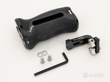 L'articolo in vendita, acquistato nuovo originale Smallrig, è la maniglia laterale (cod. 4015) con staffa di attacco a doppia vite da 1/4" e posizionabile, come pure la cinghia da polso (cod. 2456), su entrambi i lati. Sulla parte superiore è disponibile una slitta flash (cold shoe) e 4 filettature da 1/4". La brugola per il fissaggio della staffa di attacco ha un alloggiamento a presa magnetica sul fondo della maniglia.