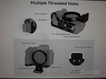 Supporto per Riprese Orizzontali/Verticali, compatibile Arca-type. Fantastica e direi indispensabile per foto di Architettura e paesaggio ma anche per ritratti su cavalletto o monopiede. Vendo solo perché ho cambiato macchina e quindi non è più compatibile.