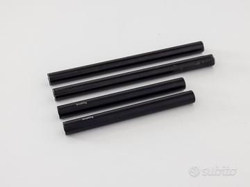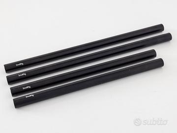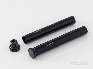 Gli articoli in vendita, tutti acquistati nuovi e originali Smallrig, sono i seguenti: 2 x asta da 30 cm (cod. 1053) 2 x asta da 25 cm (cod. 1052) 2 x asta da 20 cm (cod. 1051) 2 x asta da 15 cm (cod. 1054) 2 x asta da 10 cm (cod. 1049) 4 x connettore filettato per asta (cod. 900) 4 x tappo filettato per asta (cod. 1617) Tutti gli articoli sono in alluminio e compatibili per i sistemi 15mm LWS. Le aste sono dotate di filettatura interna M-12 per l’utilizzo con i connettori e i tappi filettati. I connettori permettono di avvitare tra loro le aste (figura 5), mentre i tappi consentono la protezione del profilo dell'asta (figura 6).