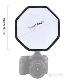 Mini softbox ottagonale diametro 20 cm circa per flash portatile NUOVO completo di sacchetta per il trasporto, mai usato, ancora nel suo cellophane.