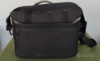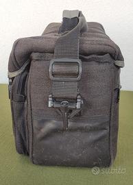 SOLIDEX borsa a spalla per videocamere / apparecchi fotografici, originale vintage degli anni '90. Dotata di 3 scomparti interni posizionabili con velcro, e di altri 3 scomparti con cerniera. La borsa è usata, completa, integra e pulita. Le cerniere sono funzionanti. Ci sono segni di usura minimi. Le misure interne dello scomparto sono 34 cm x 17 cm x 22 cm di altezza circa. Spedizione con imballo accurato.