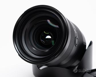 Qualità Sony G Master. Questo obiettivo produce immagini nitide e splendidi colori; bokeh molto piacevole ed immagini prive di distorsioni. L'autofocus è molto veloce e reattivo; estremamente silenzioso e preciso. Lente piuttosto luminosa considerando che è un f/2.8 su uno zoom. Il range di focale è abbastanza ampio da consentire scatti di panorama ma anche ritratti con una significativa compressione dei piani. Lente in condizioni eccellenti. Barilotto, paraluce e tappi sono perfetti. Lenti pulite, niente funghi muffe o separazioni. L'elemento protettivo frontale presenta dei micro-graffi che non influiscono sulle foto scattate. Ho scattato macro e primi piani senza mai accorgermene. SONY 24-70 mm f/2.8 G Master Formato: FULL FRAME (+ APS-C) Angolo di campo: 84.1° - 34.4° Lenti: 18 elementi in 13 gruppi Min. distanza focale: 0.38 m AF motor Diametro Filtri: 82 mm Peso: 886 gr. 88 x 136 mm *per qualsiasi info scrivetemi*