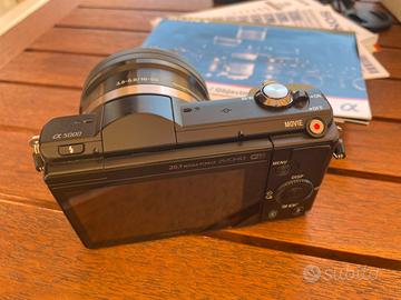 Sony a5000 in ottime condizioni. Utilizzata molto poco, avrà circa 3000 scatti. Spedirò esattamente ció che si vede in foto.