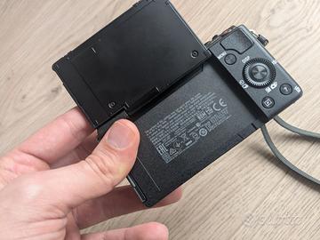 Attenzione! Solo corpo, obiettivo non incluso. La fotocamera presenta due difetti: Nonostante funzioni correttamente (scatta foto, registra video e ha meno di 1000 scatti), quando viene spenta presenta un’anomalia nel processo: si accende e si spegne da sola alcune volte. Di conseguenza, ogni eventuale modifica alle impostazioni non viene salvata e la fotocamera torna alla configurazione predefinita (Priorità di Diaframma). Tuttavia, foto e video vengono regolarmente salvati sulla scheda SD. Quando si spegne completamente, l’otturatore rimane chiuso (come visibile in foto), il che non è un problema poiché si riapre normalmente all'accensione. È presente una piccolissima crepa nella parte inferiore, visibile nelle immagini. È stata causata da un mio tentativo di aprire la fotocamera per ripararla; ho poi desistito visto che, essendo funzionante, non valeva la pena rischiare. Include: batteria, caricabatterie, tappo corpo e manuale. Prezzo non trattabile. Se non riesco a venderla a 100€, preferisco tenerla come secondo corpo macchina. A chi è rivolta? È una fotocamera con un'ottima qualità d'immagine, dotata dello stesso sensore da 24mp della Sony a6000. La uso come seconda camera o per viaggiare: per 100€ hai una macchina che puoi portare ovunque senza troppe preoccupazioni. Non so se valga la pena ripararla; funziona con qualche piccolo inconveniente, ma fa il suo lavoro. Se non la vendo, continuerò a usarla così com’è: entra nella tasca della giacca e non devo preoccuparmene come faccio con la mia costosa full-frame.