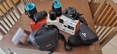 Sony A6000 7400 scatti - obiettivo sony 16/50 - obiettivo sony 18/135 obiettivo - obiettivo 7Artisans 7,5mm f 2.8 Fisheye - custodia in pelle - due custodie neoprene per obiettivi diversi - borsa Sony - custodie obiettivi - dotazione completa originale batterie e caricabatteria in confezione originale. Tutto come nuovo usato pochissimo.