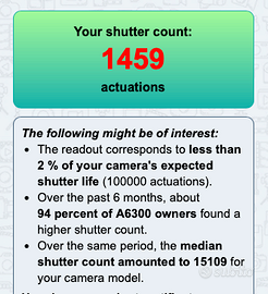 vendo a6300 per passaggio a sony a6700, usata pochissimo perche ero passato a 6400, viene venduto il corpo macchina senza obbiettivo 1459 scatti