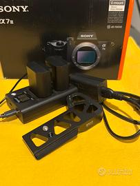 Fotocamera pari al nuovo , completa di scatola tracolla , batteria originsle e corredo, con impugnatura e due batterie enegon compatibili con il loro caricabatterie Vendo per passaggio a Sony A7Cii Sony a7iii sony alpha7