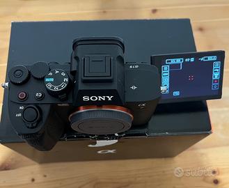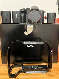 Vendo SONY a7lV 3207 scatti,usata pochissimo,comprata negozio fisico con la ricevuta.Come da foto con la scatola,batteria originale,edue batterie Vemico con carica batterie,gabbia Smallrig.