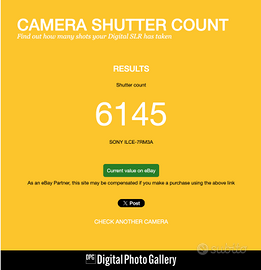 Vendo Macchina fotografica Sony a7R III A (quindi la versione aggiornata con nuovo monitor e porte usb-c più veloci). Splendida full frame da 42 megapixel. Le condiziono sono ottime, nessun difetto estetico e funzionamento perfetto. Ha solamente 6145 scatti, zero video. Acquistata a febbraio 2022 non più in garanzia. Macchina italiana e con menu in italiano. Completa di scatola e di tutti gli accessori presenti nella confezione. Si prega di evitare offerte ridicole o scambi