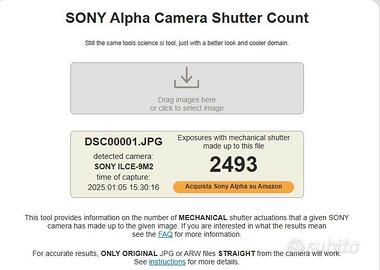 Sony A9 II solo 2.943 scatti , scocca con leggeri segni di utilizzo solo sulla parte superiore, nessuna botta, (visibili in foto), display perfetto, con seconda batteria Sony FZ100 originale, caricabatterie originale, cinghia originale, scatola.