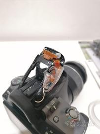La macchina fotografica è perfettamente funzionante in tutto tranne per il flash che non si accende e manca la sua copertura in plastica. Può essere utilizzata per foto senza flash oppure aggiungere un flash esterno che si applica sopra. La macchina scatta foto regolarmente in tutte le sue funzioni, tranne il flash che non si accende. Completa di tutti gli accessori in foto incluso obiettivo originale 18 55 ottimo.