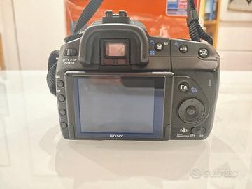 Vendo Corpo Macchina Sony Alpha 350, fotocamera reflex con sensore APS-C (1.5x) da 14.2 megapixels, gamma di sensibilità 100-3200 ISO, scatto a raffica di 3 FPS. In perfette condizioni. Set completo di scatola originale, custodia, corpo macchina e due batterie, mancante piattaforma per ricarica batterie.
