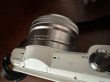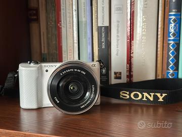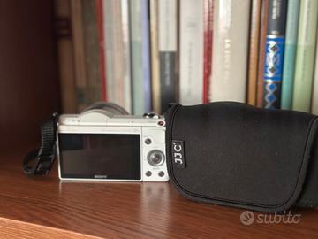 Vendo sony alpha 5000 praticamente nuova, perfettamente funzionante, senza alcun tipo di danno come si può vedere, con scatola completa, caricabatterie originale e obiettivo 16-50. La macchinetta è stata utilizzata pochissimo e sempre trasportata con l'apposita custodia che si vede in foto. Insieme alla fotocamera cedo anche alcuni accessori, come la custodia stessa e un treppiede da tavolo.