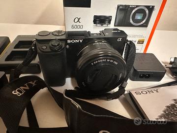 Macchina fotografica mirrorless APSC Sony Alpha 6000 corredata da: - obiettivo 16/50 OSS 3.5-5.6 - 3 batterie originali Sony - 3 batterie compatibili - 2 caricabatterie compatibili - cinghietta collo - 1 memory SD 64 Gb SanDisk ultra 80/mbs - scatti 7353 Prezzo 560,00 trattabile Possibilita di ulteriore obiettivo - Sony originale E 55 - 210 mm F 4.5 - 6.3 OSS prezzo 175,00 se comprato con la macchina sara ribassato il prezzo