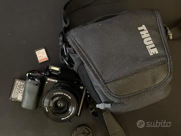 3025 SCATTI. Sony alpha 6000, come nuova. Scatola e componenti originali + scheda da 64gb di memoria. Incluso anche il porta fotocamera.