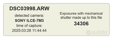 Vendo Sony Alpha A7 III in ottime condizioni. Circa 34.000 scatti, sempre utilizzata con cura. Menu in lingua inglese. Preferisco scambio a mano per permettere eventuali test.