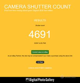 Sony Alpha 73, tenuta in maniera maniacale, scatola originale, cinghia originale, carica batterie, 3 batterie (una Sony e due compatibili), un caricabatterie a due slot ulteriore, 4691 scatti. La vendo a questo prezzo a causa di un pixel bruciato, visibile sono in alcune condizioni controluce.