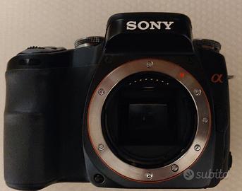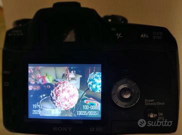 Sony alpha 100 in perfette condizioni estetiche e di funzionamento. Con obiettivo Sony, carica batteria, 2 batterie, scheda compact flash, cavetteroa, cinghia e confezione originale. Manca il CD