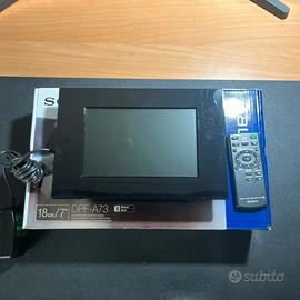 Vendo cornice digitale Sony S-Frame modello DPF-A73, colore nero, usata pochissino in ottime condizioni. Scatola originale, completa di tutti gli accessori. Caratteristiche principali: - Display LCD da 7 pollici (18 cm) ad alta risoluzione - Design elegante e moderno, cornice nera lucida - Slot per schede (SD, Memory Stick, USB) per visualizzare foto in modo semplice e immediato - Funzione slideshow con diversi effetti di transizione - Possibilità di visualizzare l’orario e utilizzare la cornice come orologio digitale o calendario - Rotazione automatica delle immagini - Supporto da tavolo stabile e orientabile - Telecomando incluso