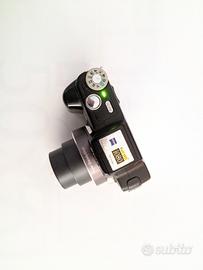 Completa di 2 batterie al litio, caricabatterie, scheda di memoria, custodia, tracolla e copri obiettivo.