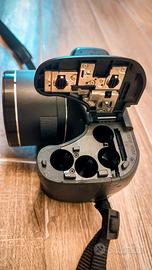 Fotocamera digitale bridge compatta che si distingue per un corpo simile a quello di una DSLR, dotata anche di una comoda impugnatura.